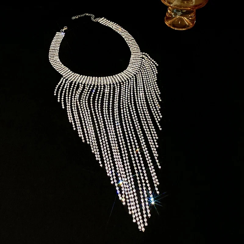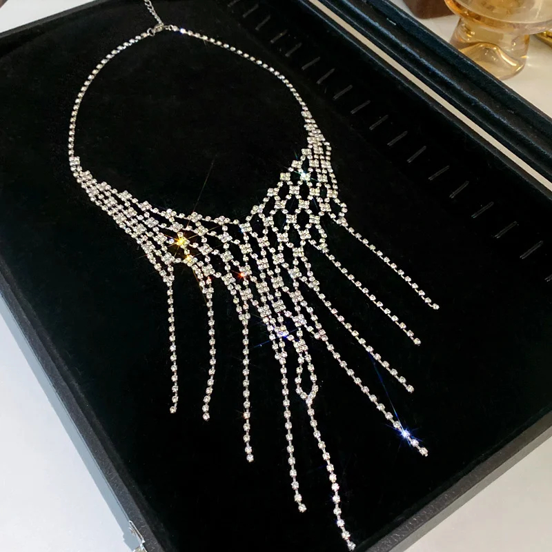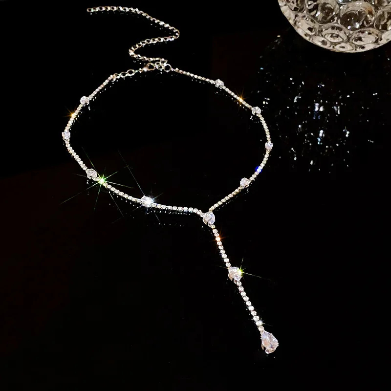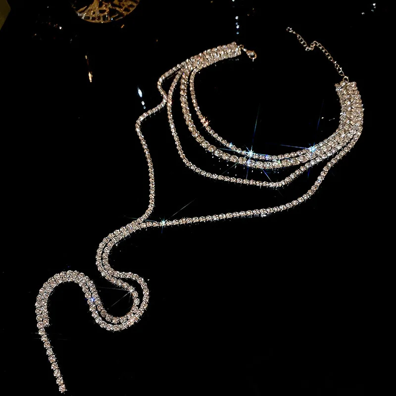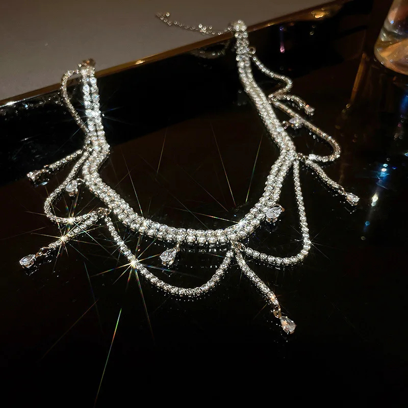 قالدة أنيقة بتصميم عصري مزينة بكريستاالت المعة تعكسالضوء بشكل رائع، مما يضيف لمسة من التألق إىل إطاللتك. مصنوعة من مواد عالية الجودة مع تفصيل دقيق، مثالية للمناسبات الخاصة أو كإضافة فاخرة لمظهرك اليومي