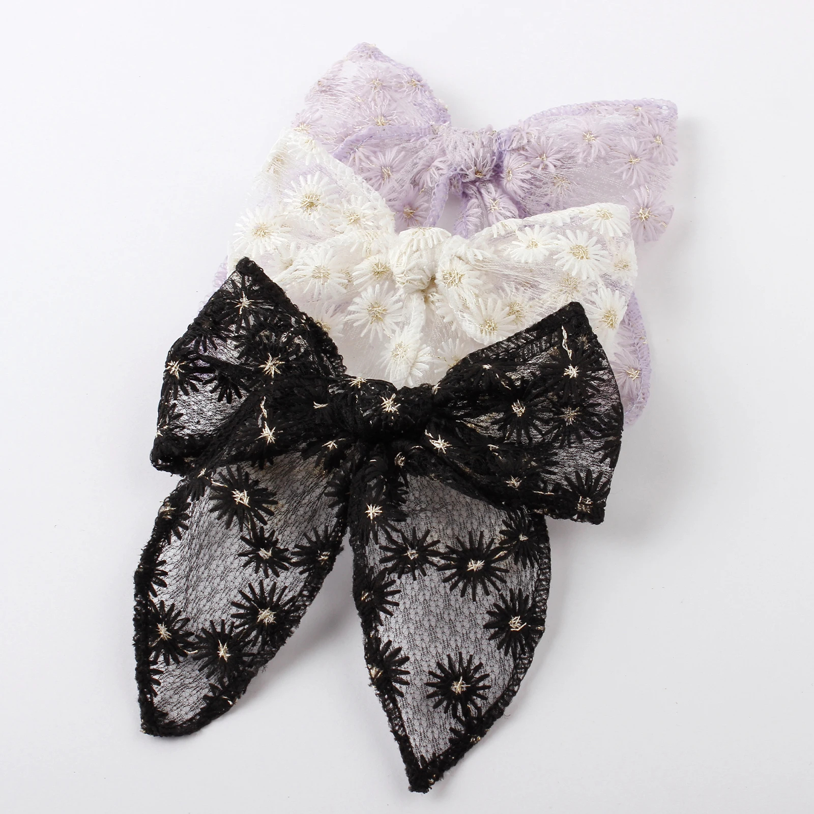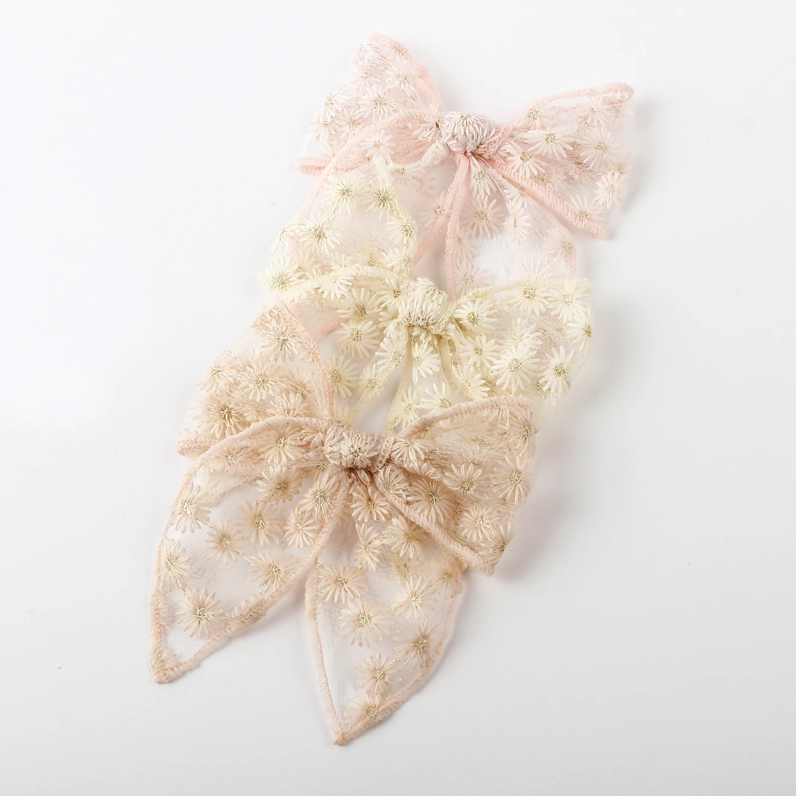 طقم مكون من 3 مشابك شعر بناتية أنيقة، بتصميم زهرة وتطريز دانتيل ناعم. تضيف لمسة لطيفة وجميلة لتسريحة ذيل الحصان أو أي ستايل يومي."
