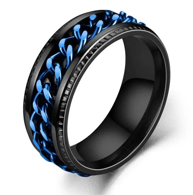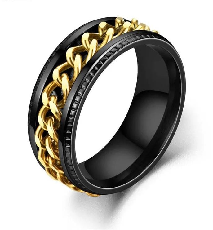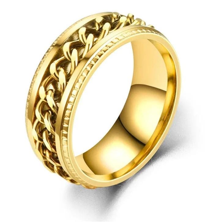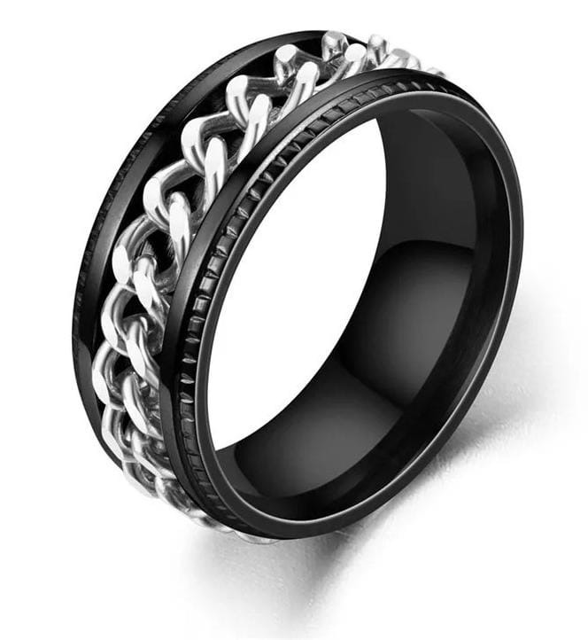 "خاتم رجالي أنيق من الفولاذ المقاوم للصدأ، بتصميم دوّار مميز يعطي لمسة عصرية وفريدة. فيه 8 حلقات قابلة للدوران، مناسب للستايل اليومي أو كهدية مميزة للشريك."