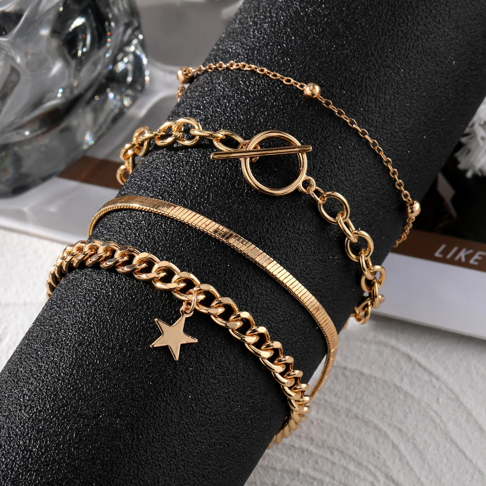 طقم أنيق يتضمن مجموعة من األساور المصنوعة من االستانلسستيل عالي الجودة، مما يضمن المتانة واللمعان الدائم. يتميز بتصميم عصري يناسب مختلف األذواق ويمكن تنسيقه مع إطالالتك اليومية أو الرسمية. مثالي للنساء اللواتي يحببن األناقة البسيطة والفاخرة في آن واحد.